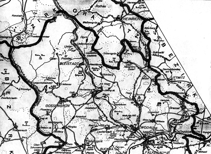 teilweise: Straschnitz, Witzmanov; Mühlen: Neumühl, Sägemühl, Sauermühl.